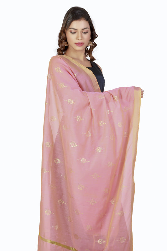 Golden Pink Dupatta Online With Printed Gold Foil Work