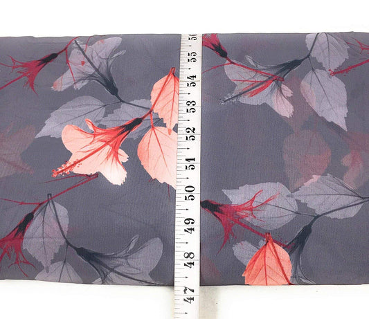 Grey Floral Pattern Digital Print Georgette Fabric