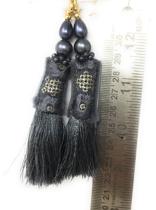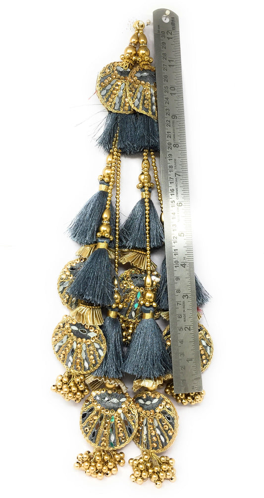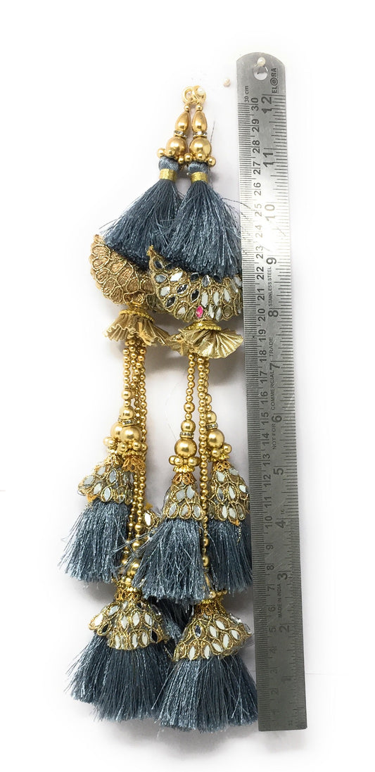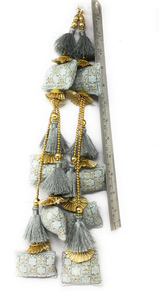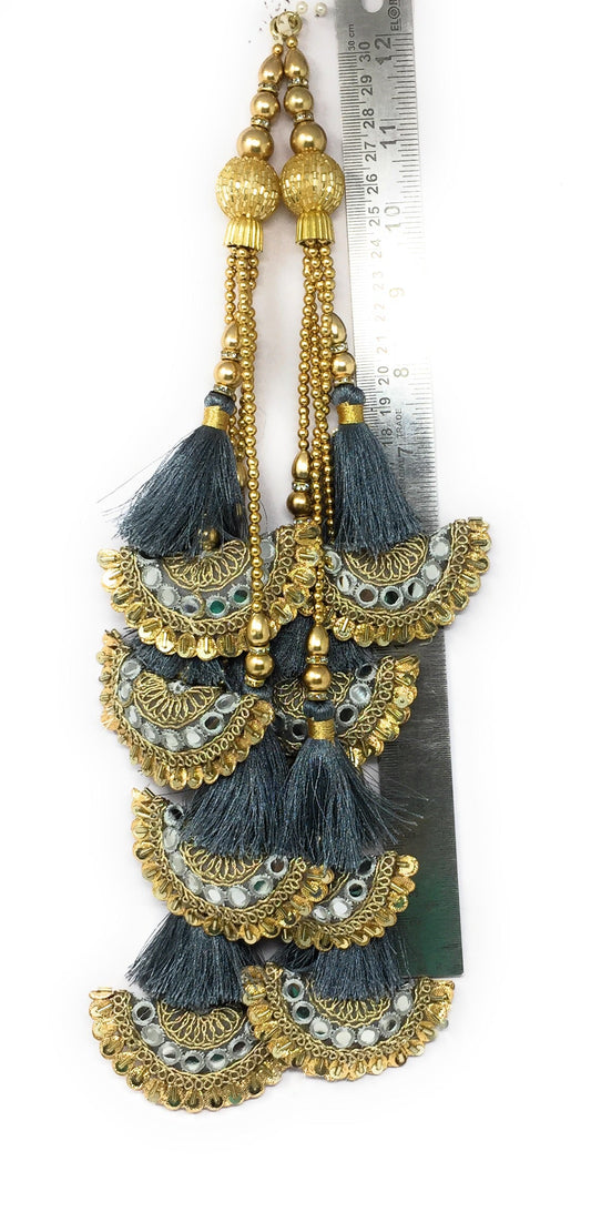 Grey handmade tassels for lehenga, Crystal Work - Set of 2