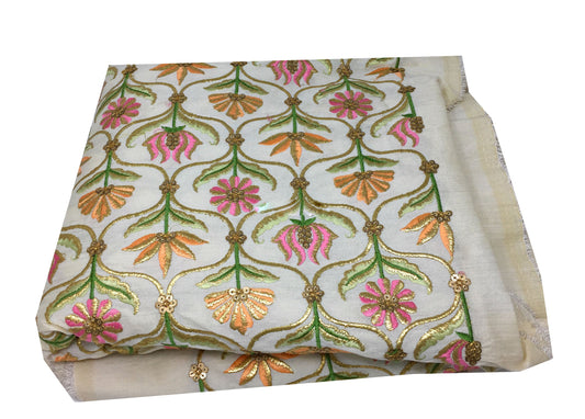 White Embroidery Dyeable Silk Fabric n Sequins Work