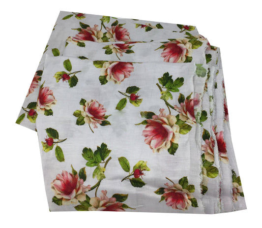 AusverkauftWhite Floral Print Linen Satin Fabric