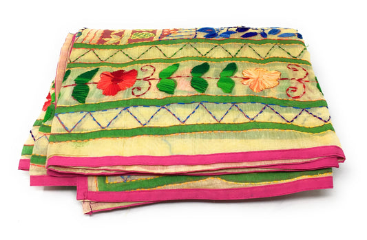 White Embroidered Dupatta - Kantha Work on Madhubani Art