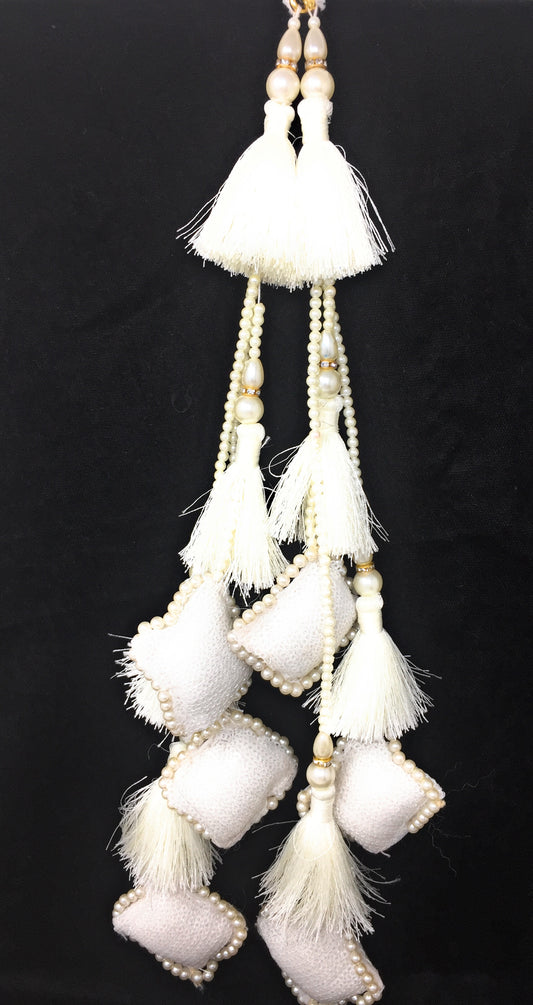 AusverkauftWhite lehenga mein lagane wale latkan - Set of 2