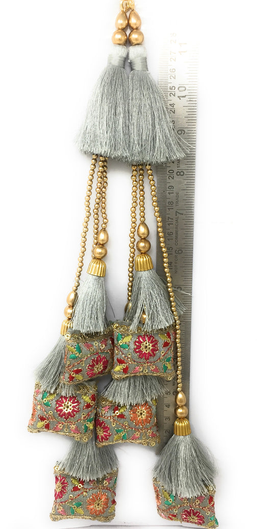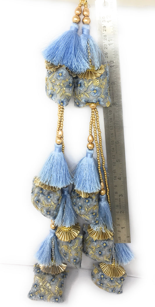 Pastel Blue tassels on lehenga, Embroidery Work - Set of 2