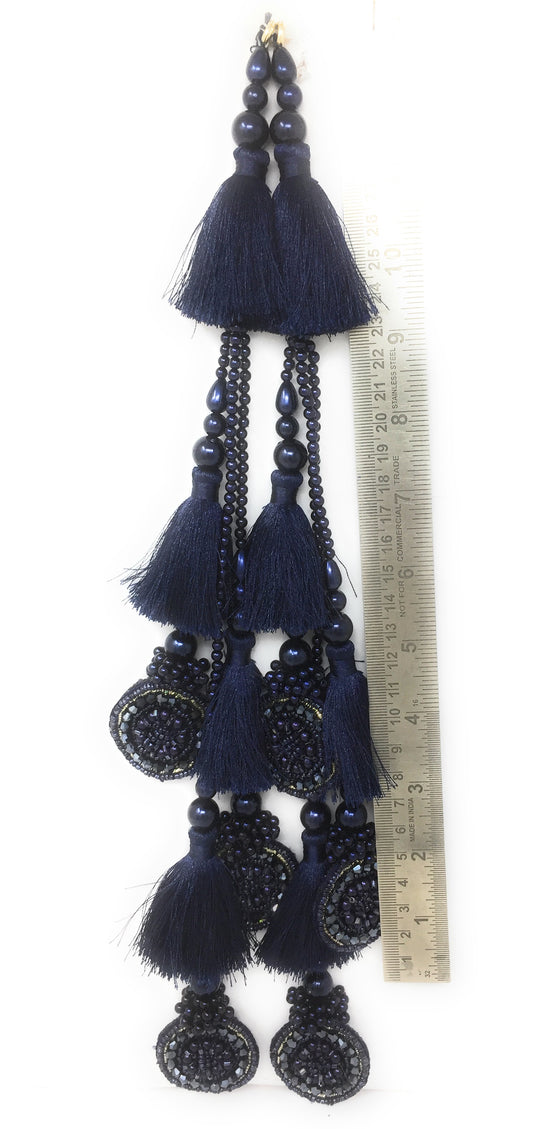 Navy Blue tassel latkan for lehenga, Crystal Work - Set of 2