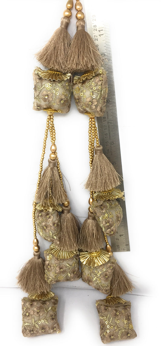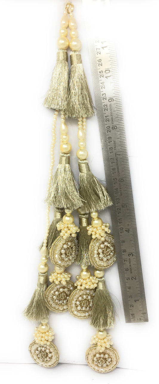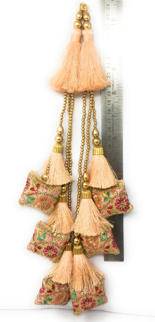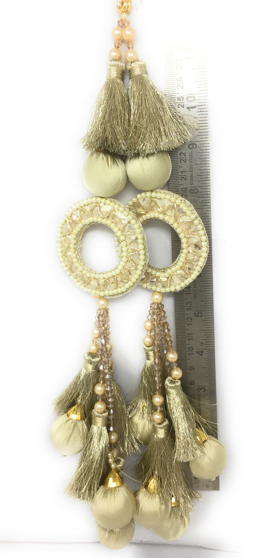 Pastel Beige tassel design for lehenga, Embroidery Work - Set of 2