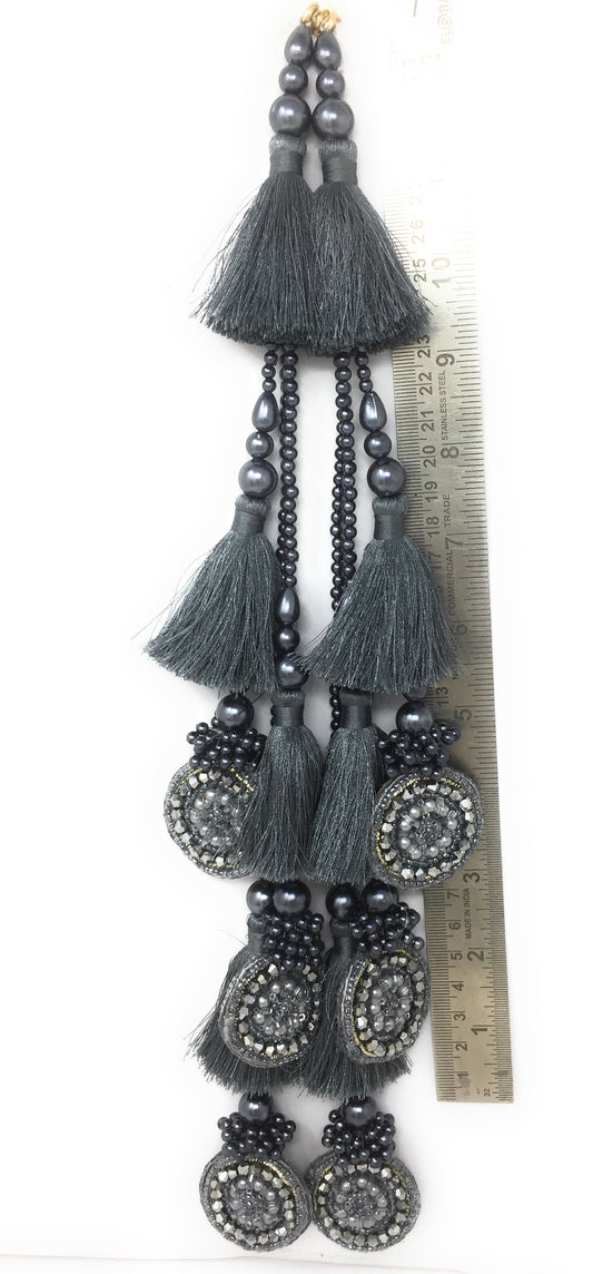 Grey handmade tassels for lehenga, Crystal Work - Set of 2