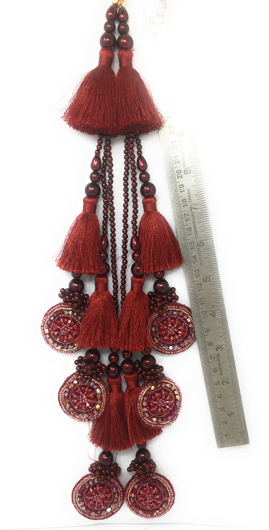 Maroon hanging latkan for lehenga, Crystal Work - Set of 2