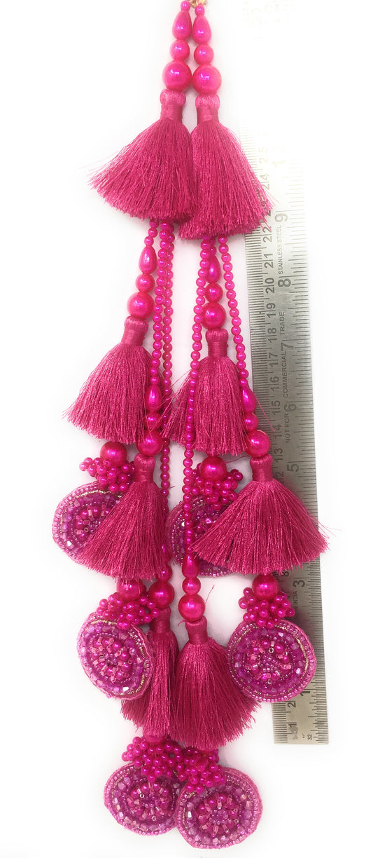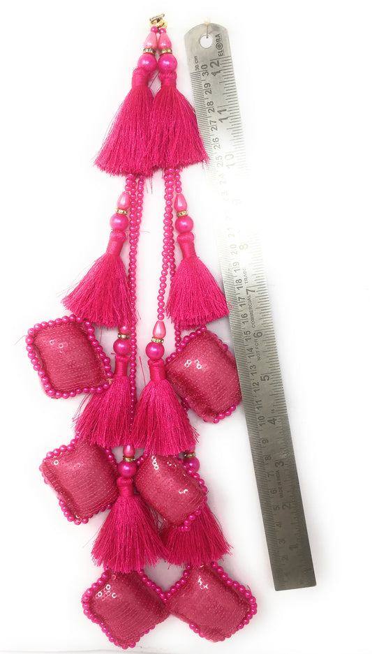 Rani Pink lehenga hanging tassel, Crystal Work - Set of 2