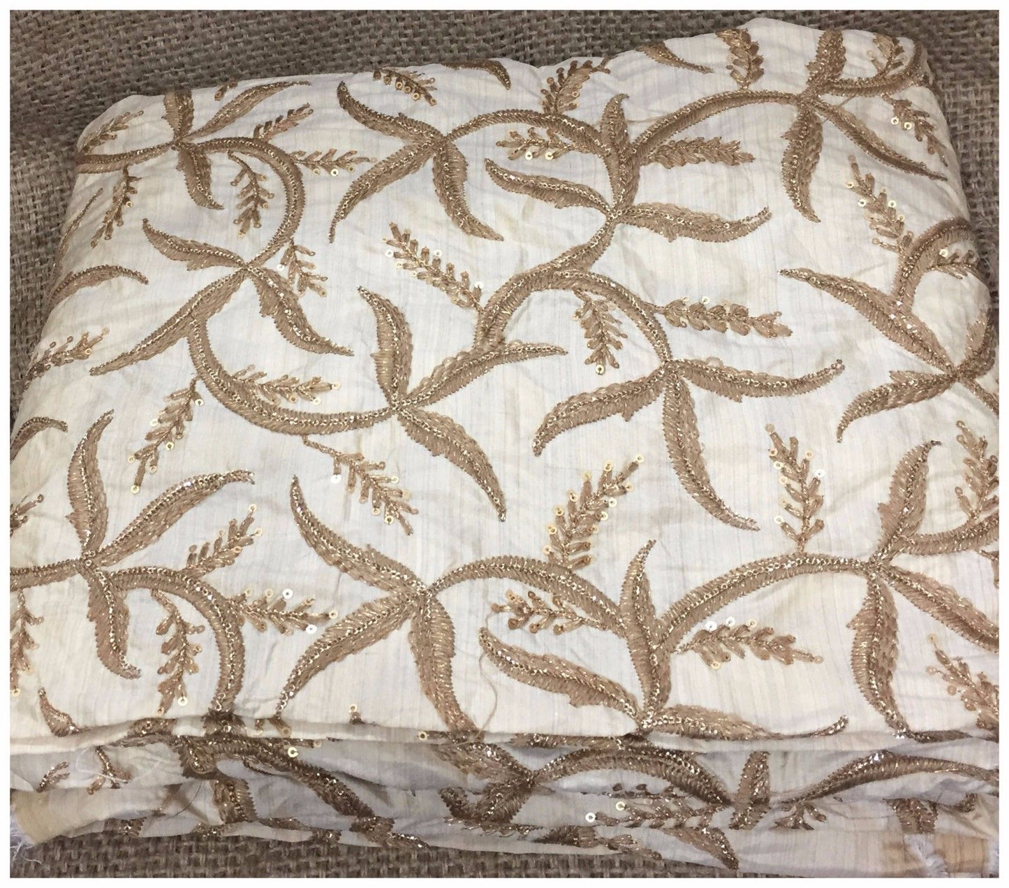 Kurti Material Blouse Fabric by meter Brown, Gold Embroidered, Sequins on Beige