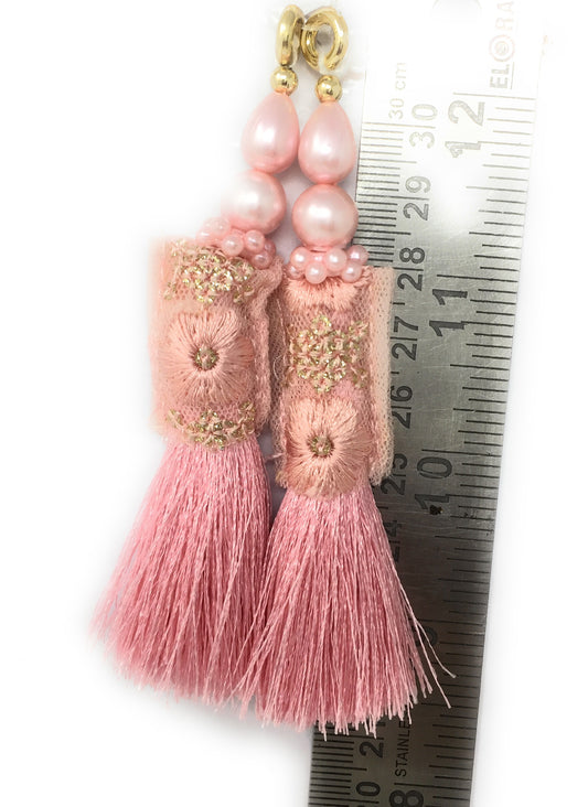 Blush Pink Fabric | Gold Coding Embroidery | Net Mesh Tulle Material