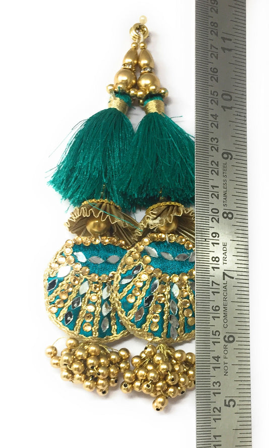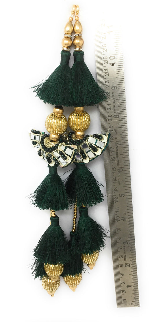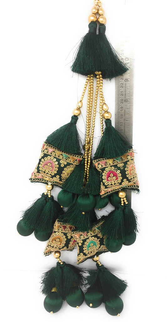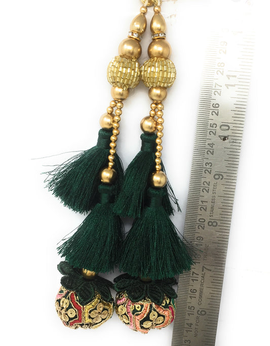 Bottle Green heavy blouse latkan with Pom Pom - Set of 2