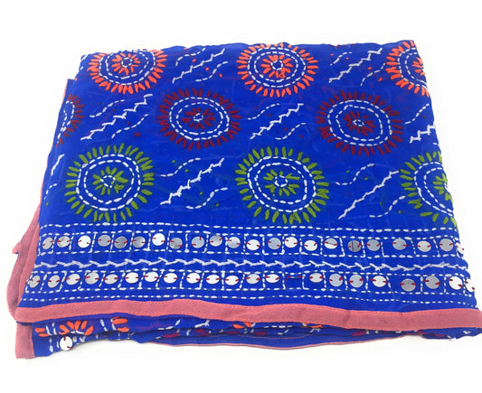 Blue Phulkari Dupatta, Multi Colour Embroidery, Mirror Work