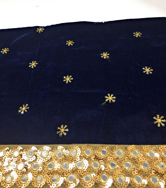 Blue Velvet Fabric, Gold Sequin Embroidery Material by meter
