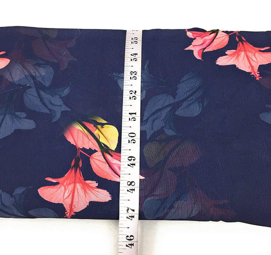 Navy Blue Floral Print Georgette Fabric