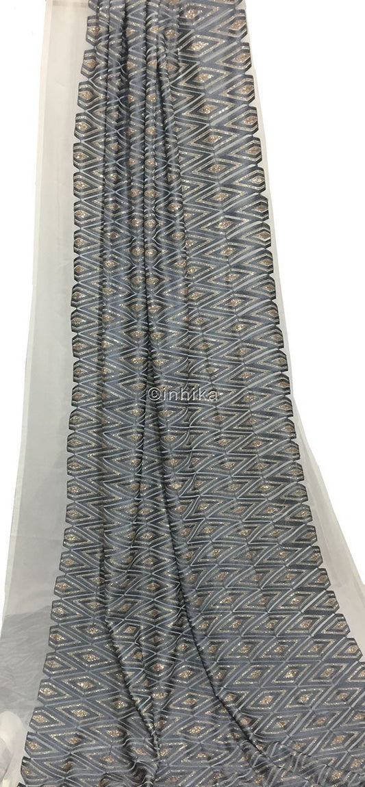 Kurti Material Blouse Fabric by meter off white georgette blue grey embroidery