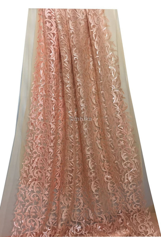 Kurti Material Blouse Fabric by meter Peach Orange Net Self sequins embroidery