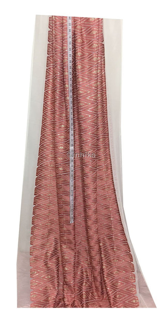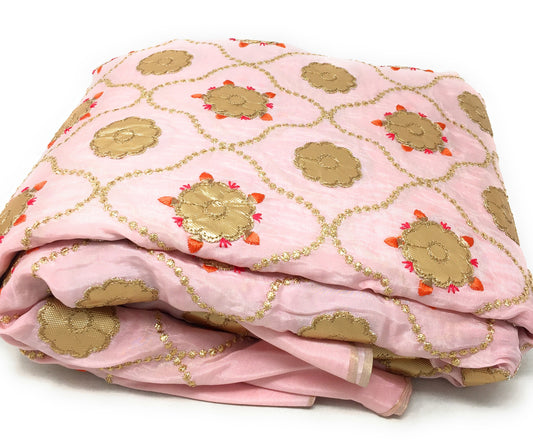 Kurti Material Blouse Fabric by meter Light Pink Chiffon Gold Sequins Embroidery