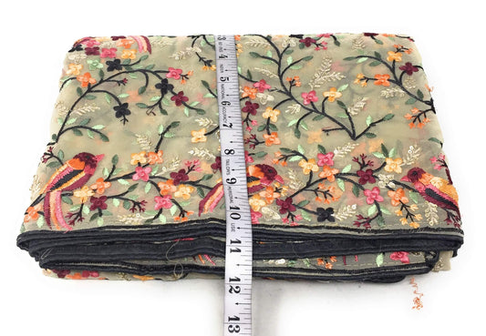 Kurti Material Blouse Fabric by meter Science Brown Embroidery on Beige Net