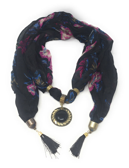 Ladies Designer Scarf In Soft Georgette With Designer Pendant At Center