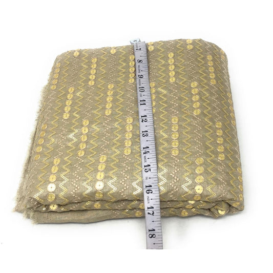 Large Gold Sequins Embroidered On Beige Silk Fabric