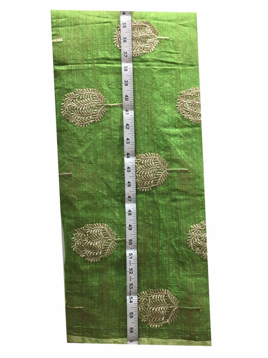 Kurti Material Blouse Fabric by meter Silverish Gold Embroidery on Green Cotton
