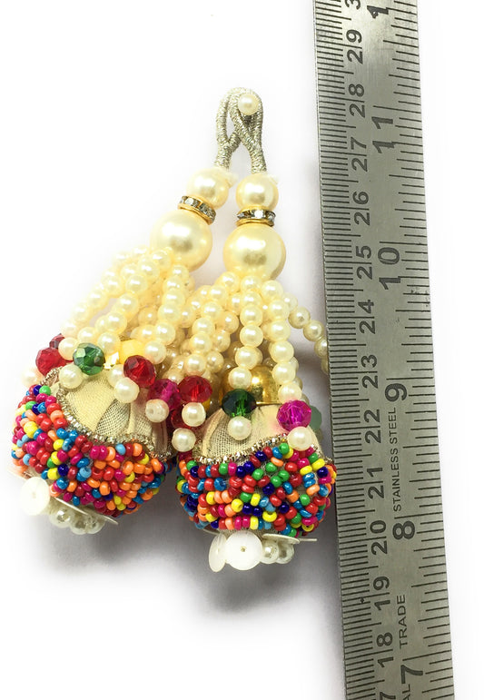 Latkan For Blouse Multicolour With White Moti - Set of 2