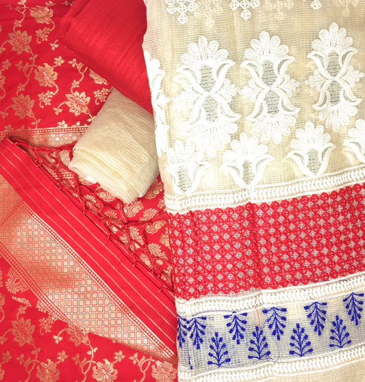 Red Brocade Fabric, Silver Gold Jacquard Work, Min Order 100 mtr, Price per mtr, Wholesale Order only