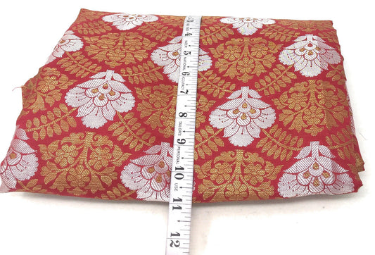 Red Floral Brocade Fabric, Silver Gold Jacquard Work, Min Order 100 mtr, Price per mtr, Wholesale Order only