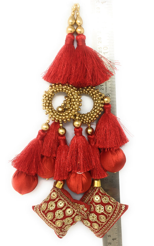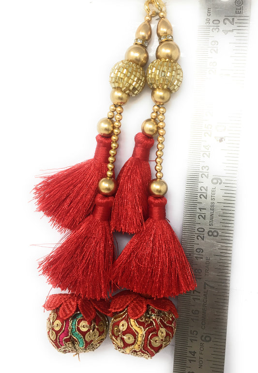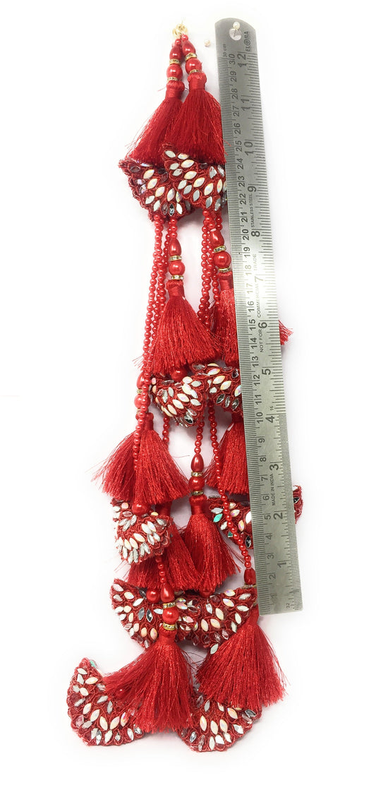 Red Latkan Lace in Crystal, Cutdana - 3 Meter