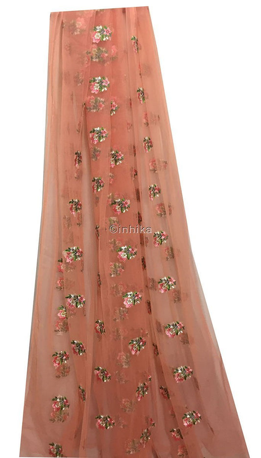 Soft Peach Net Fabric with Small Floral Embroidery - 1 Meter