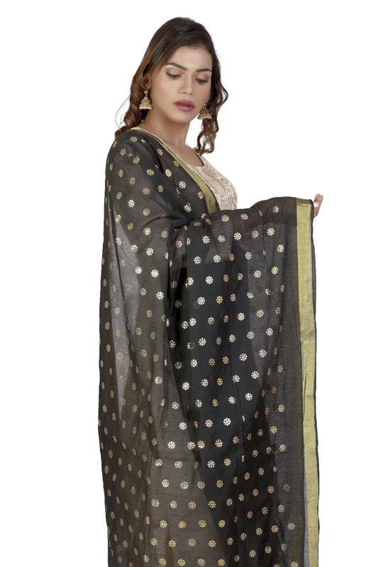 Black And Gold Dupatta Online With Printed Gold Foil Work