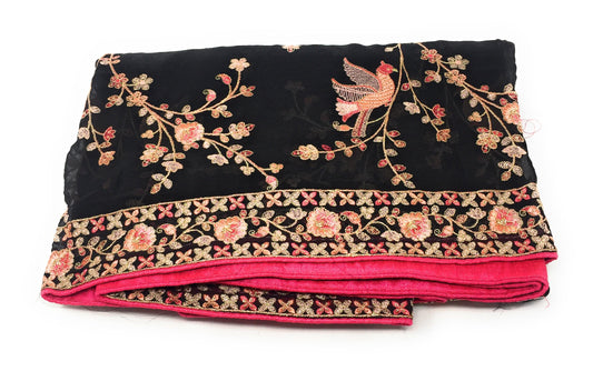 Black Beaded Embroidered Saree Border Trim - 9 Meter Roll