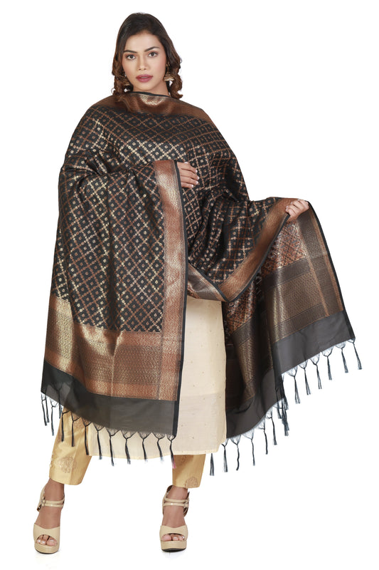 Black Banarasi Silk Dupatta In Black Colour - Pure Katan SIlk