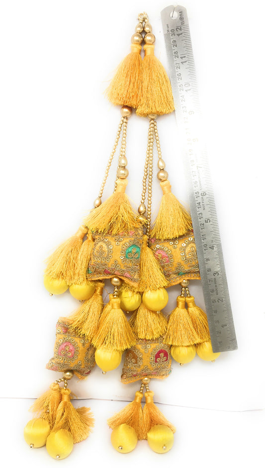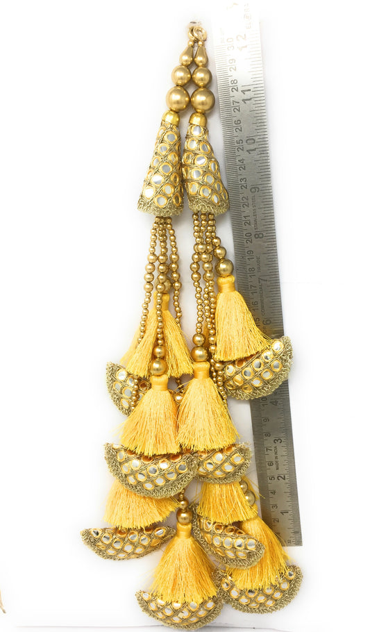 Yellow lehenga choli tassels, Paper Mirror - Set of 2