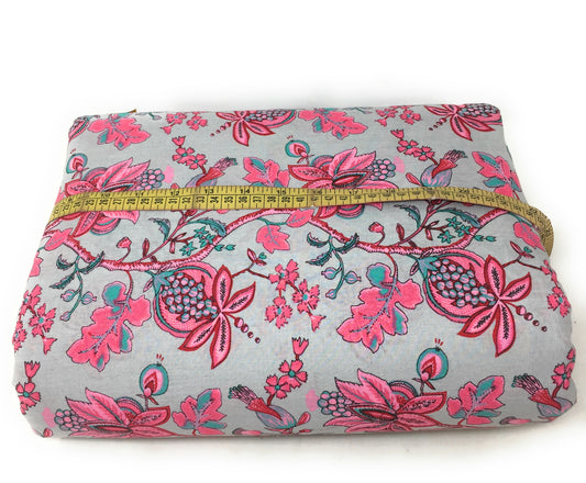 Grey Multi colour Flower Designer Printed Cotton Fabric