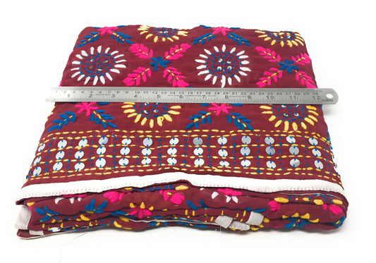 Hand Embroidery Phulkari Georgette Dupatta in Maroon n White Colour