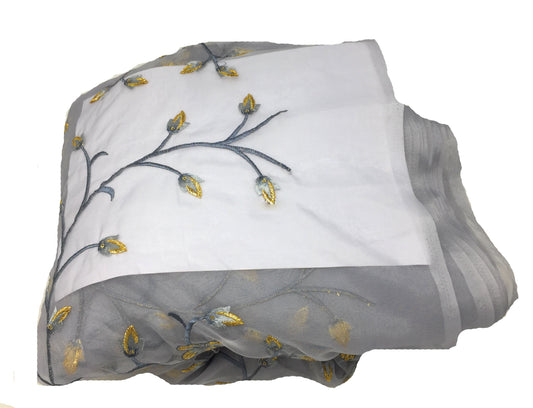 Grey Silk Embroidered Fabric Material