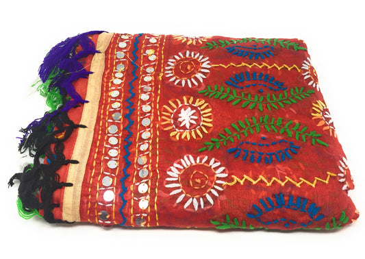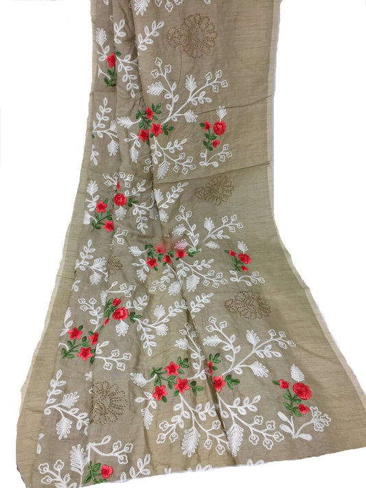Hand Embroidery On Dupatta - Kantha on Madhubani Art