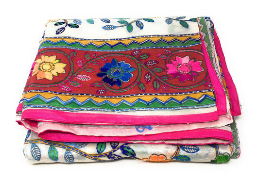 Handmade Dupatta - Kantha Embroidery on Madhubani Motif
