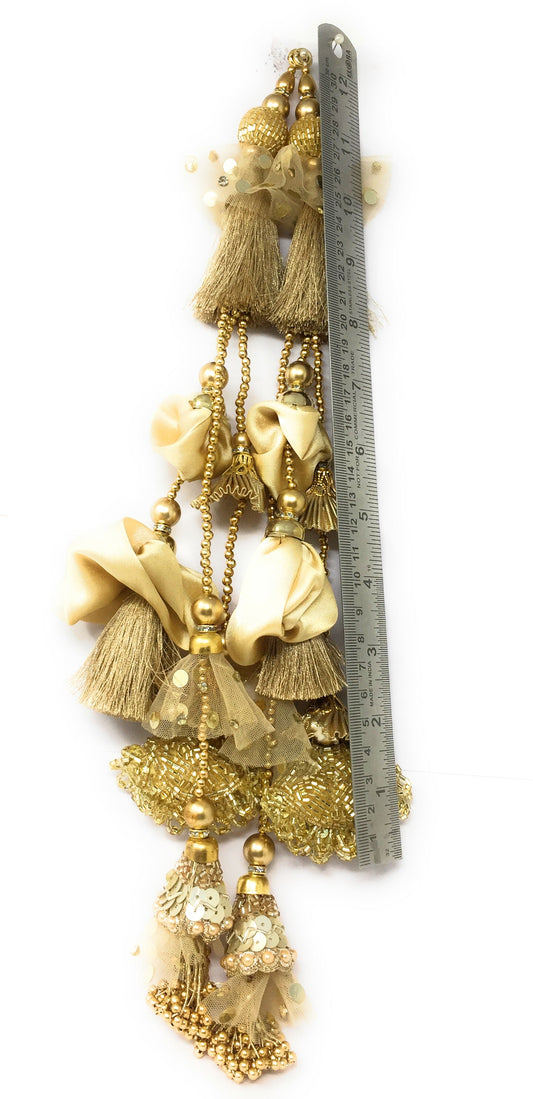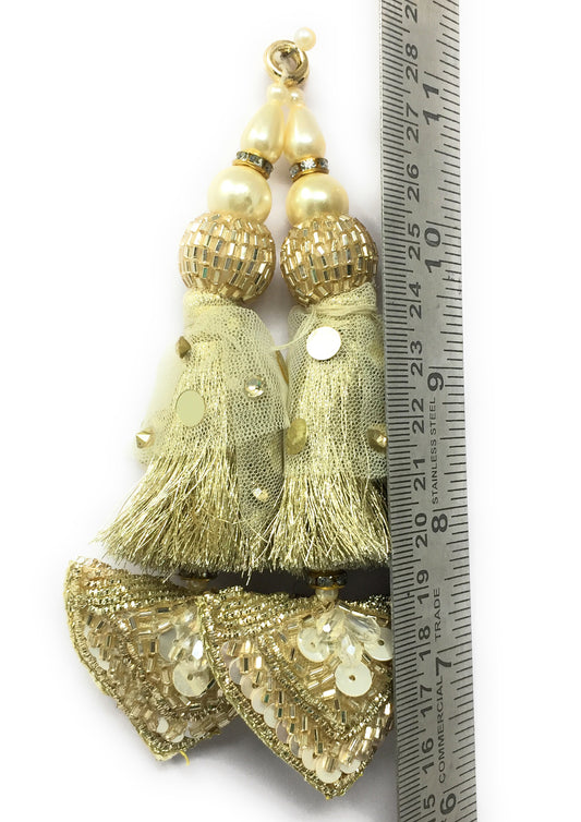 Handmade Latkan For Lehenga Beige Gold - Set of 2