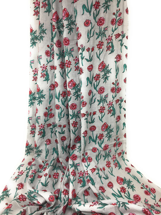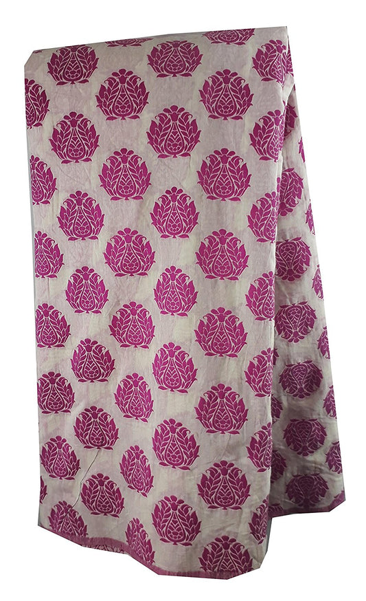 Jaquard Fabric By Meter Pink Embroidery, White Base Dress Material Kurti Skirt