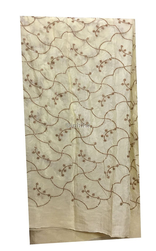 Kurti Material Blouse Fabric by meter Brown, Gold Embroidered, Sequins on Beige