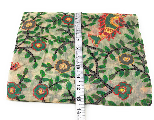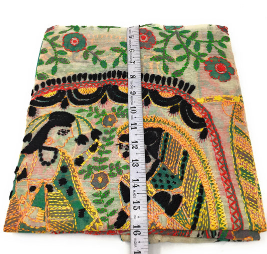 Kantha Embroidery Dupatta, Multicolou Work on Madhubani Painting