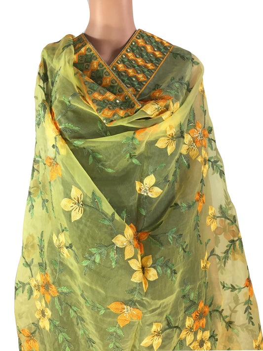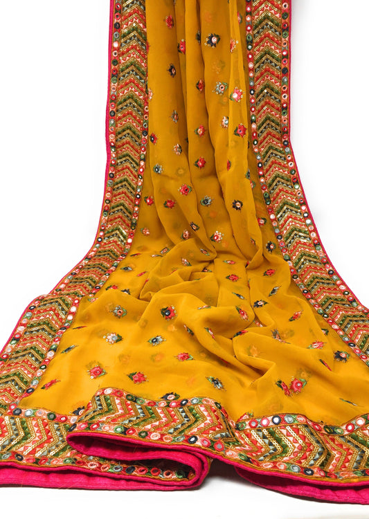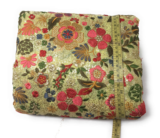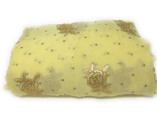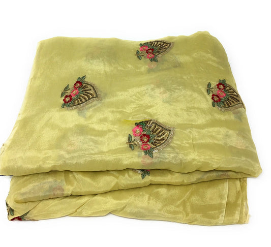 Yellow Gold Sequence Multicolor Embroidery Fabric Material on Georgette