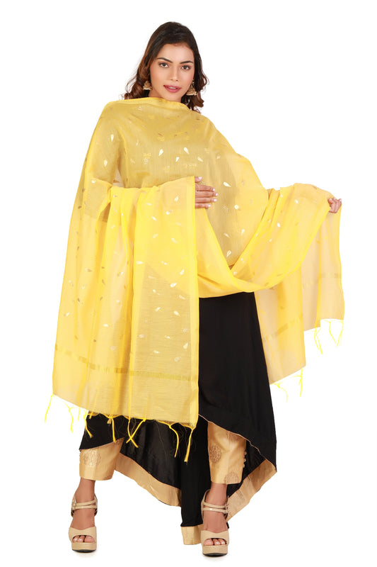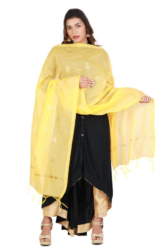 Yellow Chuni in Chanderi Fabric n Gold Print