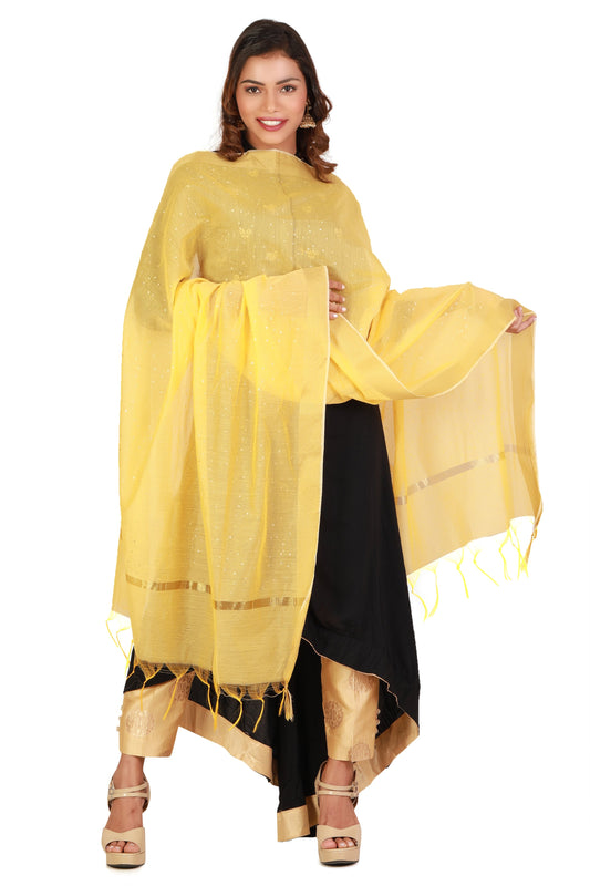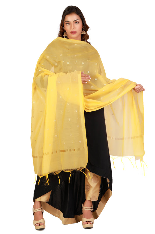 yellow indian dupatta in Chanderi Fabric n Gold Print
